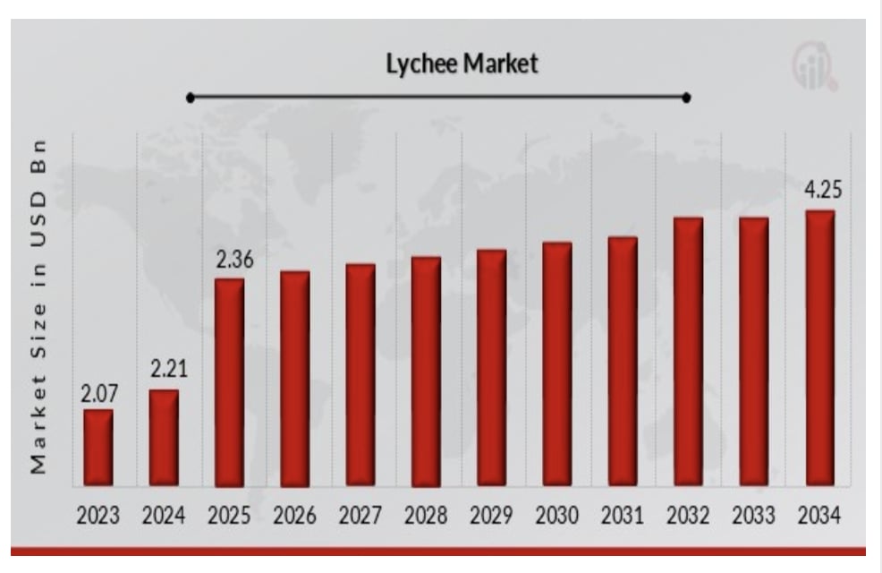 Quy mô thị trường vải thiều từ năm 2023 - 2034. Biểu đồ: Marketresearchfuture.