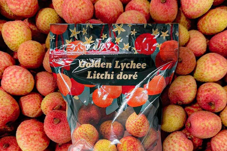 Những túi vải thiều "Golden Lychee" rực rỡ trong các cửa hàng Costco (Mỹ) - Ảnh: Đại sứ HOÀNG ANH TUẤN
