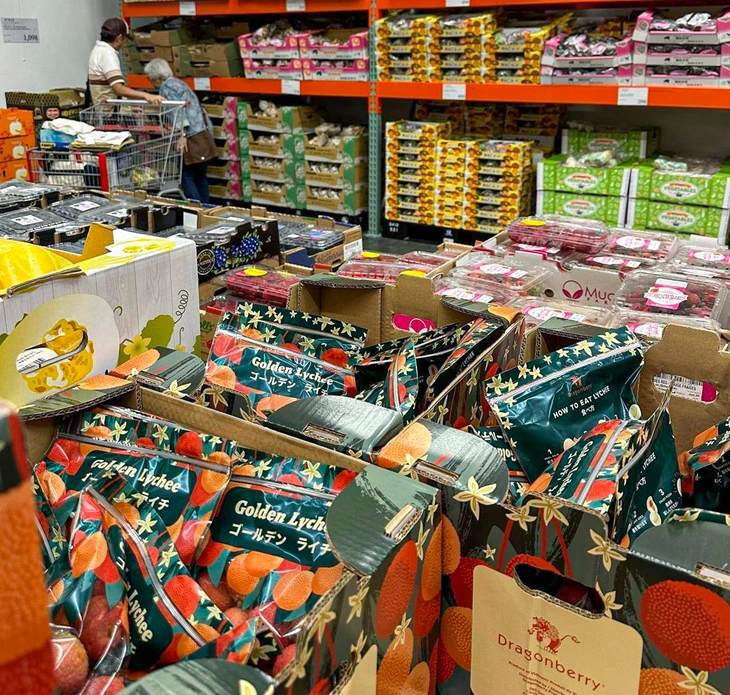 Vải thiều Bắc Giang vẫn tươi ngon khi nằm trên các kệ ở hệ thống đại siêu thị Costco (Mỹ) - Ảnh: Đại sứ HOÀNG ANH TUẤN